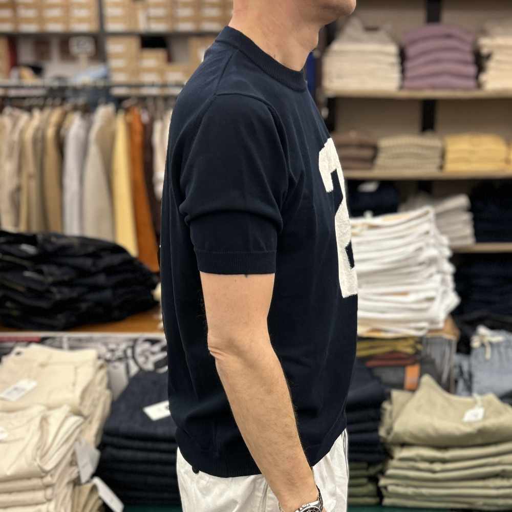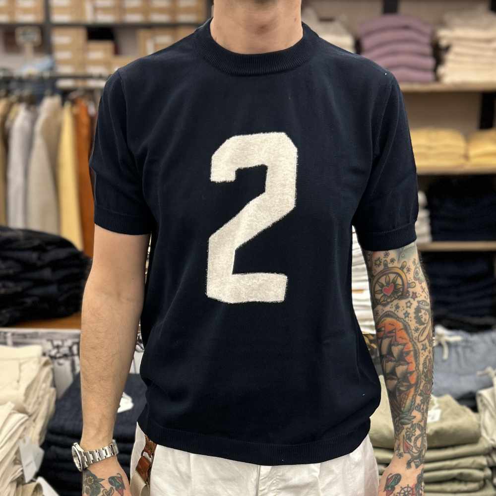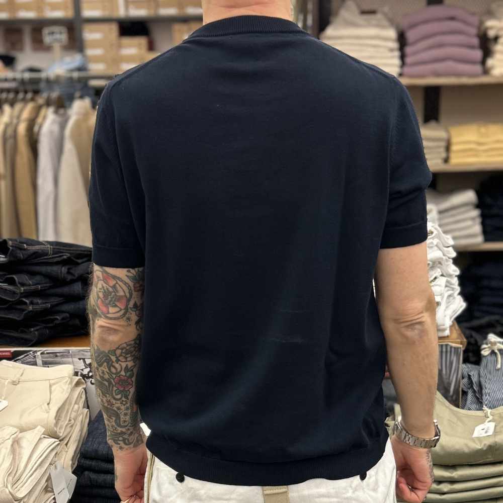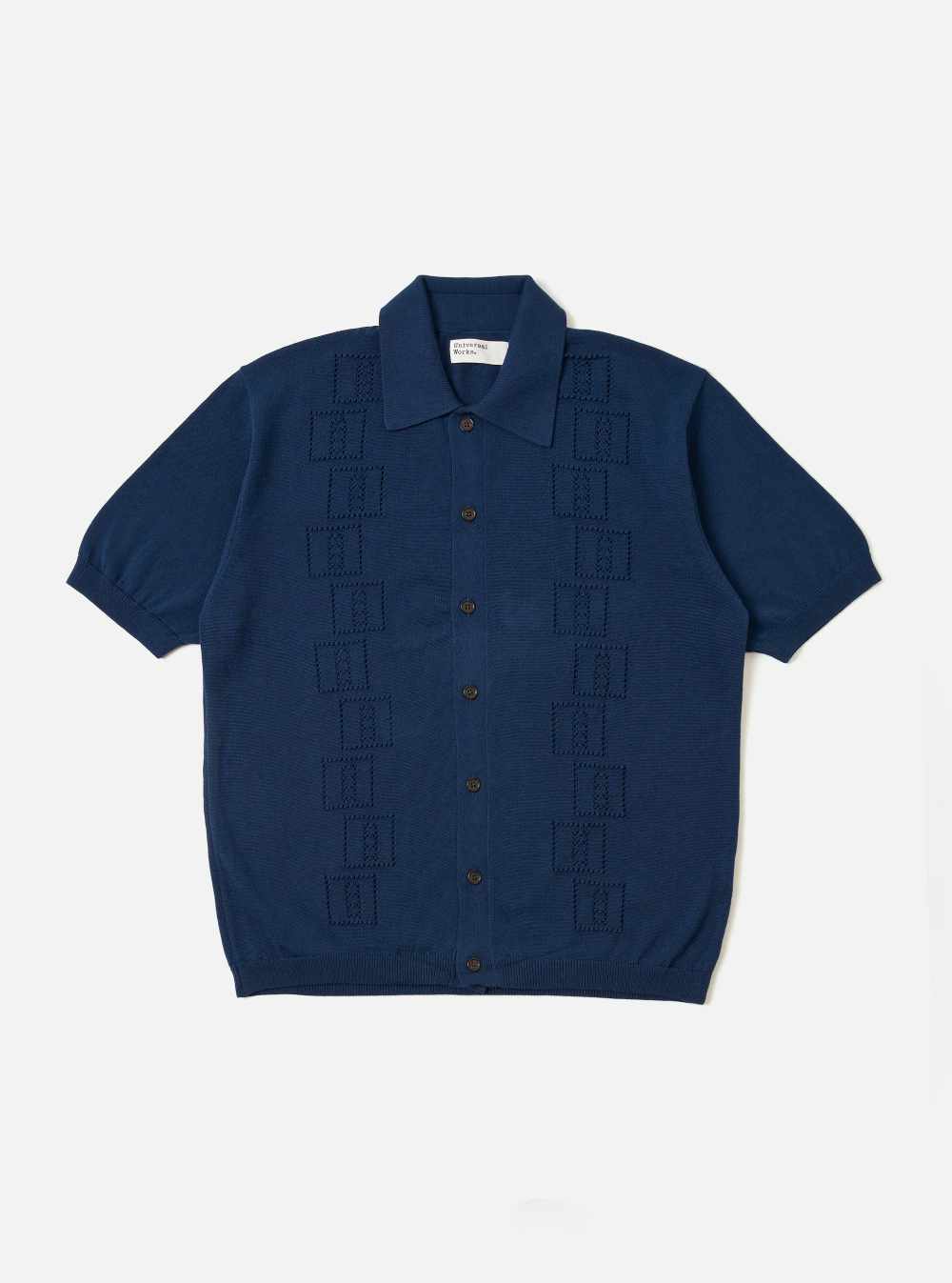 universal works jonny knit shirt dark navy cotton lace knit